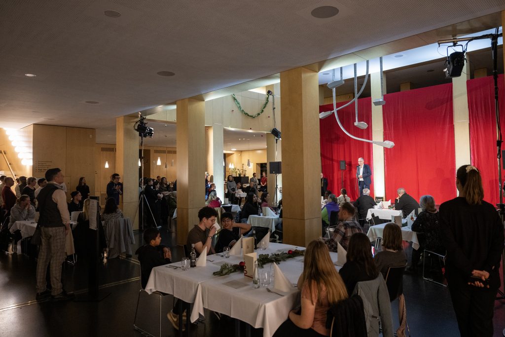 Schon beim Empfang wurde deutlich, was den Abend prägen sollte: ein offenes Miteinander, Begegnungen ohne Barrieren und ein Ort, an dem sich alle willkommen fühlen. Ein festliches Menü, serviert von Vertreterinnen und Vertretern der beteiligten Institutionen, sowie ein vielseitiges künstlerisches Programm schufen den Rahmen für wertvolle Gespräche.