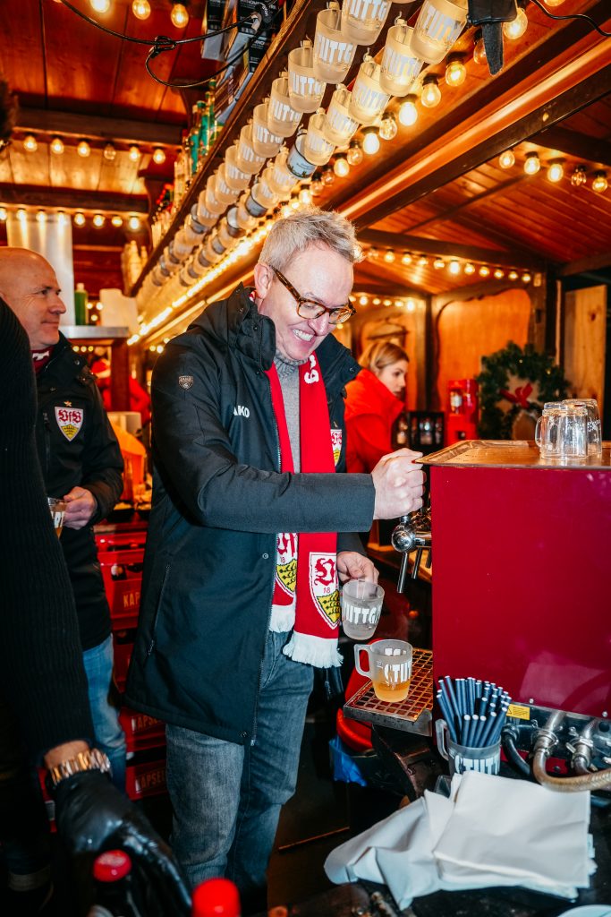 Auch Mitglieder des Vereinsbeitrags und der Vorstandsvorsitzende Alexander Wehrle und Sportvorstand Fabian Wohlgemuth standen zwei Wochen später am Stand und schenkten aus. Den Abschluss bildeten Maximilian Mittelstädt und Ramon Hendriks, die ebenfalls tatkräftig mithalfen und für Autogramme und Selfies bereitstanden.