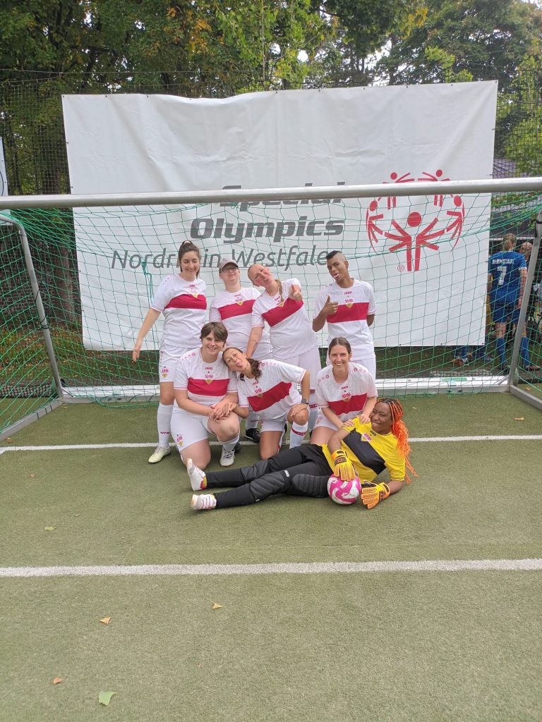 Ein historischer Moment für das Projekt für inklusive Fußballförderung (PFIFF) der VfB-Stiftung Brustring der Herzen: Zum ersten Mal seit Bestehen des Projekts trat eine VfB Stuttgart Unified-Frauenmannschaft bei den Frauen-Special Olympics NRW in Essen an. Zu großen Überraschung, krönt das Team unter Meike Frei und Regine Steinhauser ihr Debüt mit der Goldmedaille und zeigte eine starke fußballerische Leistung.