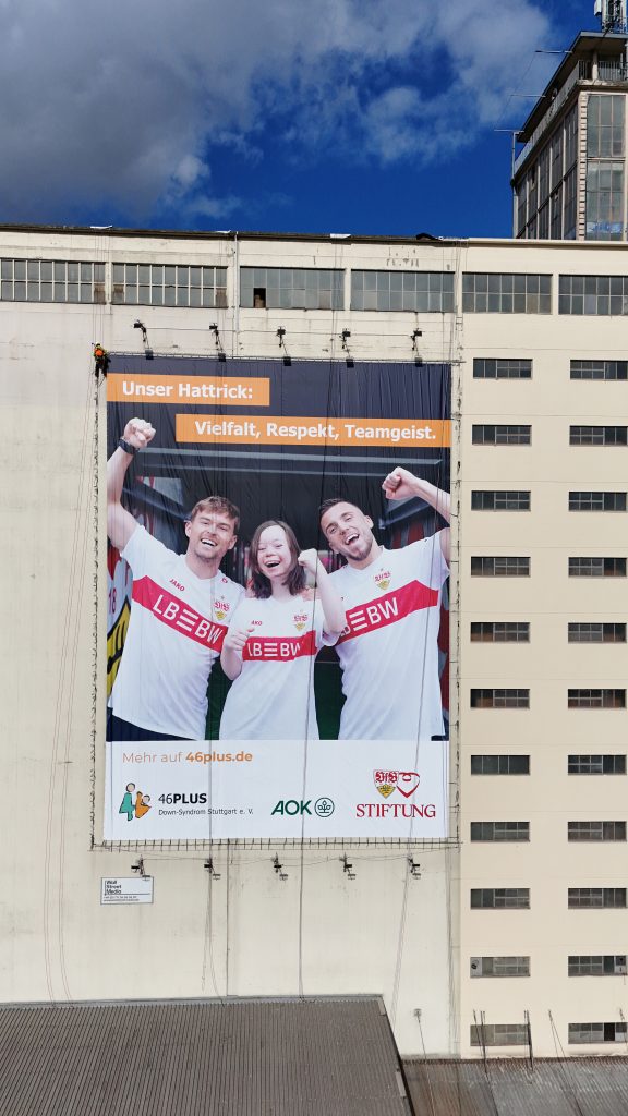 Den gesamten März über prägt die Kampagne das Stuttgarter Stadtbild: auf City‑Light‑Plakaten an Straßen und Haltestellen, einem Großflächenplakat in der Königsstraße, einem Videoboard am Cannstatter Carré, Megapostern am sogenannten „Benko‑Loch“ sowie einem knapp 400 Quadratmeter großen Motiv am Rhenus Tower an der Bundesstraße B10.