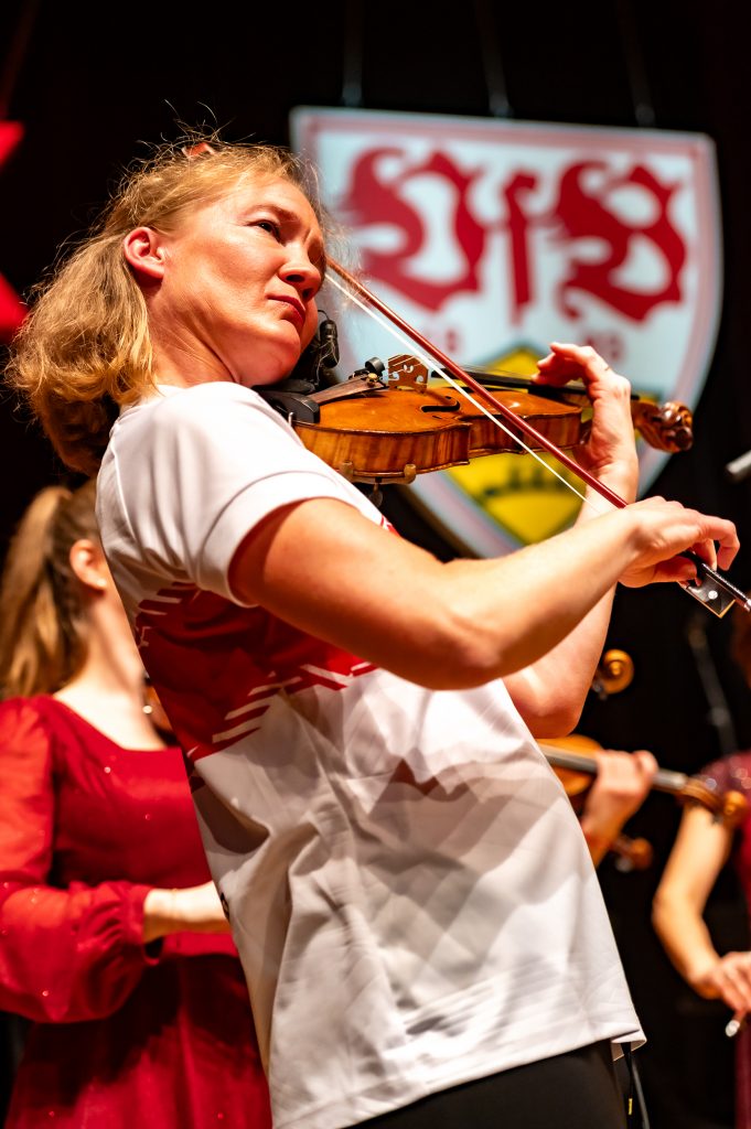 „Stuttgart kommt“ gehört zu jedem Heimspiel des VfB Stuttgart. Sobald die ersten Töne der VfB-Hymne erklingen, tragen rund 60.000 Stimmen das Lied durch die MHP Arena. Beim gemeinsamen Fankonzert mit dem Stuttgarter Kammerorchester im Hegel-Saal der Liederhalle war es genau dieses Lied, das den Auftakt für einen ganz besonderen Abend bildete. Allerdings nicht in der gewohnten Stadionversion, sondern neu arrangiert für das Orchester. Die bekannte Melodie blieb, doch die Streicher verliehen dem Stück eine neue und ebenso eindrucksvolle Klangfarbe.