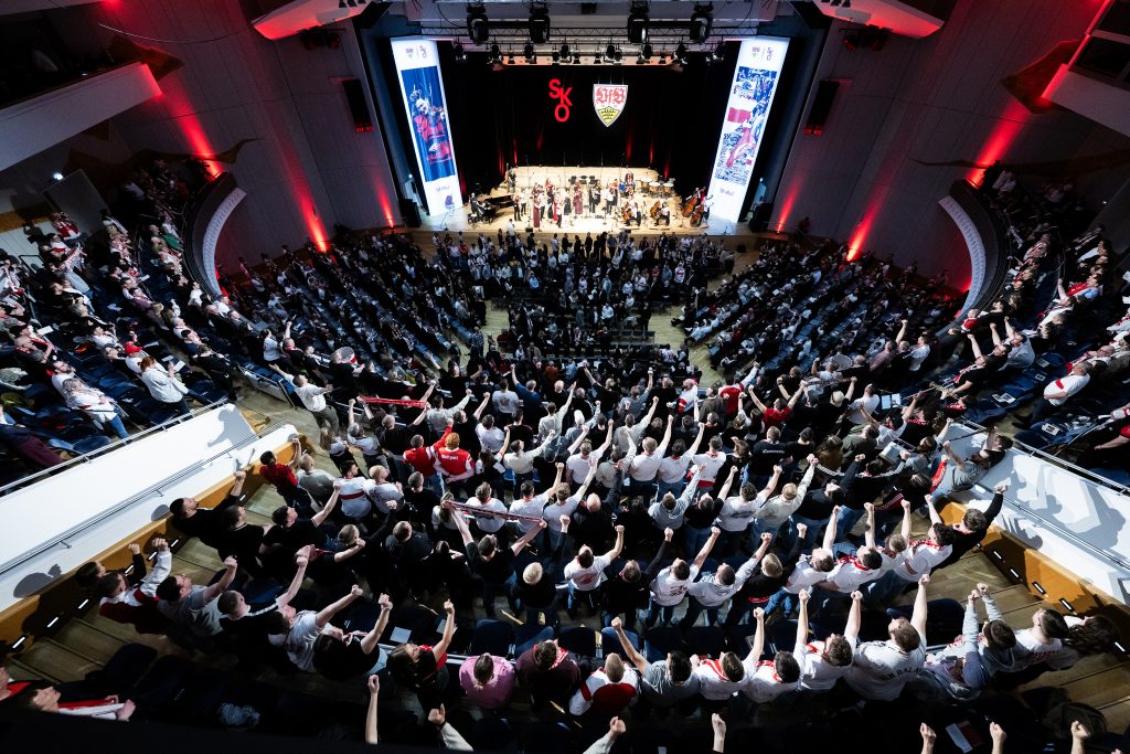 Mitgestaltet von Mitgliedern des Commando Cannstatt 1997 verwandelte sich der Hegel-Saal in einen Ort, an dem Stadionatmosphäre und Konzertsaal eindrucksvoll miteinander verschmolzen. Niemanden hielt es lange auf den Stühlen. Von Beginn an war das Publikum mit Leidenschaft und Emotion dabei. Im ganzen Saal wurde lauthals gesungen und geklatscht sowie die VfB-Schals in die Höhe gehalten. Was sonst auf den Rängen der Arena entsteht, übertrug sich an diesem Abend eins-zu-eins in den Konzertsaal. Ein Erlebnis, das den Raum füllte und die emotionale Kraft der VfB-Fankultur einmal mehr eindrucksvoll widerspiegelte.